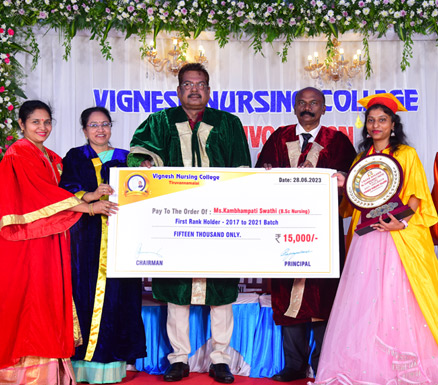 Vignesh Nursing College started under Sree Selva Vinayagar Trust in the year 2008, which is designed and constructed as per standards of Indian Nursing Council norms with a great vision of serving the public by providing academic excellence and trend setting in Nursing Education. The core values of the college are student focus, strong work ethics, striving excellence, respect for all and social development.